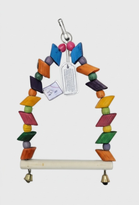 Give your feathered friend hours of fun with this colorful wooden bird swing perch. Designed with safe, non-toxic materials and playful bells, it’s perfect for parrots, budgies, lovebirds, and other small birds to swing, chew, and relax
